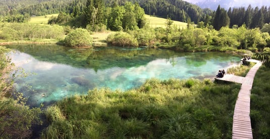ゴレンスカ地方、イタリアとの国境手前数kmに位置する水源地でボーヒン湖のサヴィツァの滝とともにサヴァ川の源流。ここの水の透明度はスロヴェニア1だから!と誘われ、足を運びましたがその透明度はもちろんエメラルドグリーンのような水の色の美しさには息を飲みます。10台ほどが止められる小さな駐車場から5分ほど歩くと到着しますが、散策路以外はトイレも売店も何もありませんでしたので(2017年6月時点)、事前に調べてから足を運んでください。
