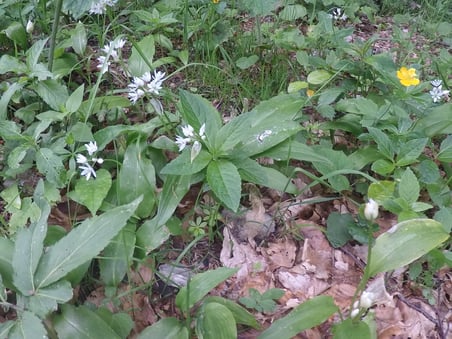 一面ワイルドガーリックの生育する森の中を通った時のこと。